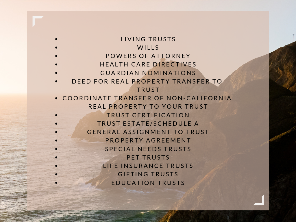 living-trusts-wills-powers-of-attorney-health-care-directives-guardian-nominations-deed-for-real-property-transfer-to-trust-coordinate-transfer-of-non-california-real-property-to-your-tr